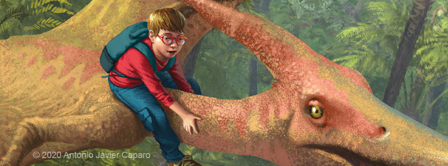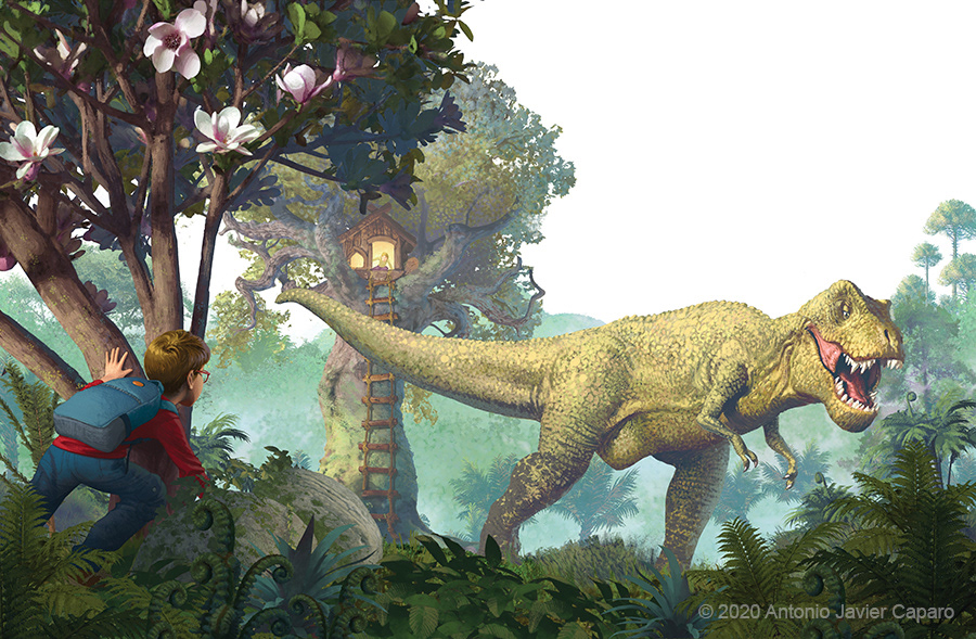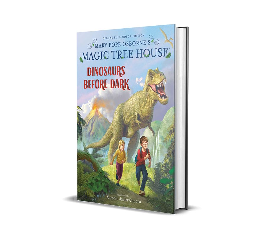 Jacket art and interior illustrations for 'Dinosaurs Before Dark' Deluxe Edition by Mary Pope Osbourne and published by Penguin Random House.