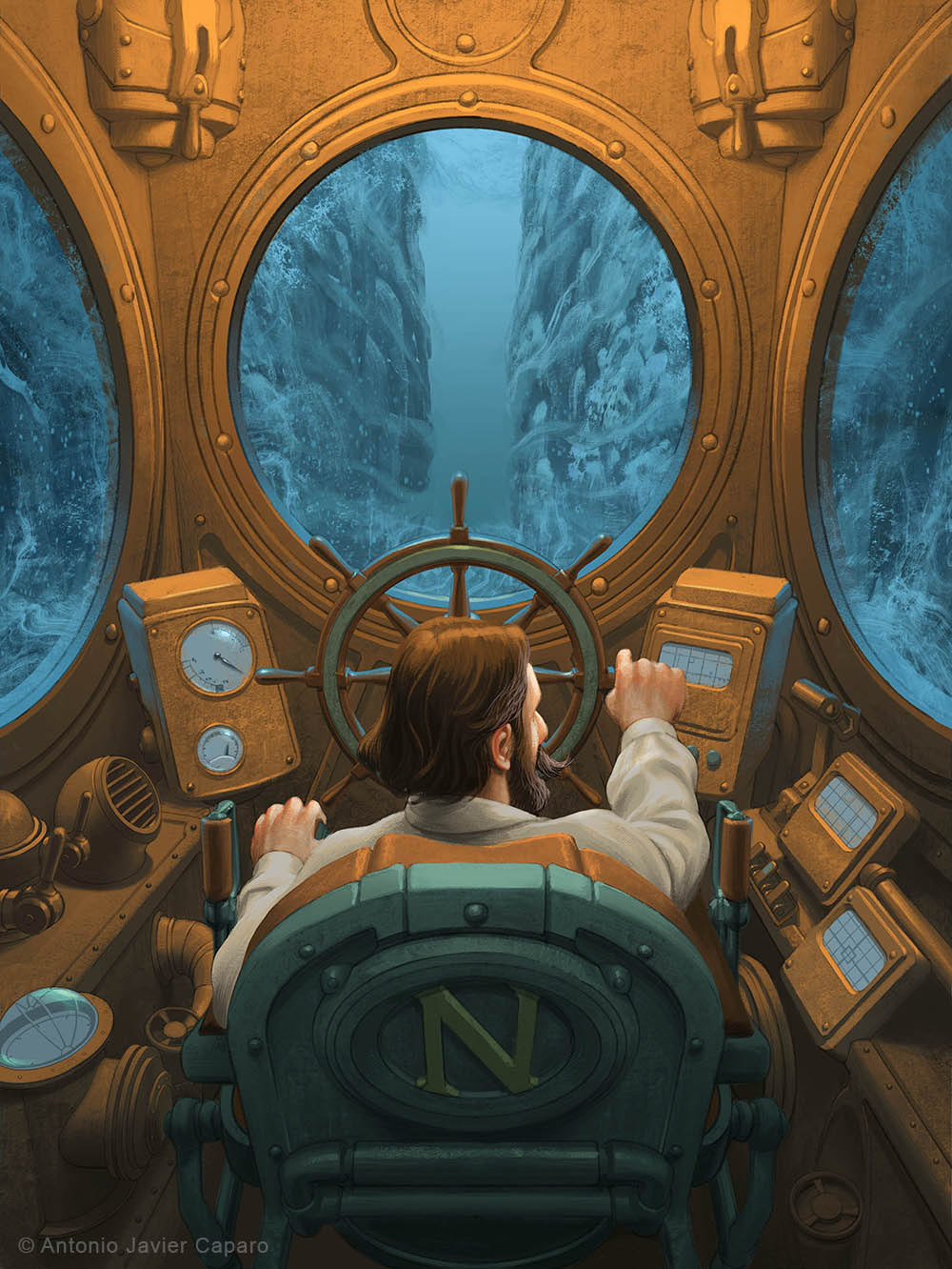 Interior illustrations for 'Twenty Thousand Leagues Under the Sea' by Jules Verne, published by Editions MAME, France, 2024